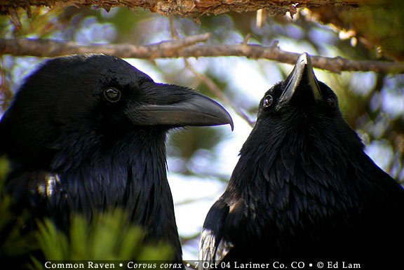 aspens in Endovalley; Townsend's Solitaire; A pair of Common Ravens. |