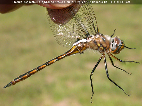 | From my snow-lined driveway in southern New York, I began my first dragonfly trip of 2007 on March 20. I drove south 2 full days to reach the southern tip of Florida. On the Florida Keys I would search for a handful of species that barely range into the United States. Jerrell Daigle had been on the Keys two weeks before and had reported Mangrove Darner/ Coryphaeschna viriditas, Antillean Glider/ Tramea insularis, and the Antillean Skimmer, the red Orthemis species that Jerrell was calling schmidti, flying in good numbers. I wanted to see these species in order to produce the illustrations for my dragonfly guide. Although I could and will work from preserved specimens, I would miss out on their coloration in life. Dragonflies simply do not preserve well, a soak in acetone can preserve the pattern, but the often brilliant coloration (especially of the eyes) of many species just fade away after death. Photographs of live dragonflies can be very useful reference but for many species I have not found photographs that would be good enough to work from. Often the photograph's point of view is not be right for my purposes, and important markings are blocked by wings or obscured by shadows. For many species I have adequate images of one sex but not the other. The Florida Keys, March 22 - 23 I arrived at Deer Key NWR on Big Pine Key on Mar 22. The first dragonfly I saw was female Seaside Dragonlet at the pond called the Blue Hole. I was hoping for Antillean Glider, as they were here just two weeks before and I had seen a few individuals here on a visit a couple of years ago. But over the two days I spent in the area I did not see any on the pond or in the surrounding woodlands. I spend quite a bit of time on No Name Key where I did find Mangrove Darners and the red Antillean Skimmer (and saw a number of Key Deer, the tiny endangered subspecies of the White-tailed Deer). The darners were flying up and down the trail through the woods. Females would land and hang up while males tended to remain on the wing and patrol until it got too hot and then they too would perch. Recent rains had created small shallow ponds at low sections of the trail and here I found red Orthemis males perching on vegetation along the edges. Females occasionally arrived to lay eggs in the shallow water, dipping their abdomens while accompanied by interested males. Species found on the Keys: Regal Darner/ Coryphaeschna ingens Mangrove Darner/ Coryphaeschna viriditas Halloween Pennant/ Celithemis eponina Red-tailed Pennant/ Brachymesia furcata Red Saddlebags/ Tramea onusta Marl Pennant/ Macrodiplax balteata Great Pondhawk/ Erythemis vesculosa Seaside Dragonlet/ Erythrodiplax berenice Antillean Skimmer/ Orthemis sp. Rambur's Forktail/ Ischnura ramburii Many thanks to Jerrell Daigle and Anne Morkill, the refuge manager of Deer Key NWR, for facilitating permission to collect at the refuge. The only other species I collected in south Florida was the Florida Baskettail/ Epitheca stella along the Tamiami Trail. I stopped at a few places but found little of interest as I headed north to meet Jerrell in Tallahassee. Additional species seen: Golden-winged Skimmer/ Libellula auripennis (Shark Valley Everglades NP) Blue Dasher/ Pachydiplax longipennis (Shark Valley Everglades NP) Eastern Amberwing/ Perithemis tenera (Shark Valley Everglades NP) Roseate Skimmer/ Orthemis ferruginea (Big Cypress NF) Four-spotted Pennant/ Brachymesia gravida (Big Cypress NF) Common Pondhawk/ Erythemis simplicicollis (Brinson Pk, Kissimmee) Carolina Saddlebags/ Tramea carolina (Brinson Pk, Kissimmee) Hyacinth Glider/ Miathyria marcella (Lk. Bessie, Orlando) Black Saddlebags/ Tramea lacerata Prince Baskettail/ Epitheca princeps Florida Bluet/ Enallagma pollutum Tallahassee, March 26 - 27 I had visited Tallahassee just last year at about the same date so I did not need to chase some of the early season specialities of the area like Say's Spiketail or Taper-tailed Darner. I did again see plenty of Gomphus cavillaris brimleyi, the dark subspecies of the Sandhill Clubtail. My main target was the Florida Cruiser/ Didymops floridensis, the larger, somewhat grayer cousin of the much more widespread Stream Cruiser/ Didymops transversa. On Monday we checked a number of beautiful sandy ponds and lakes but saw no Cruisers at all. Along the sandy pond edges, we saw the larval tracks of Belle's Sanddragon, Progomphus bellei, a species I'll need to come back for. It was also still too early for Sepia Baskettail. We tried a couple of just perfect streams for another target, Arigomphus pallidus, the Gray-green Clubtail but again found none. Our only accomplishment of the first day was a female specimen of Clearlake Clubtail, Gomphus australis. I captured a male of this species last year. Not particularly hopeful, we tried another pair of lakes on Tuesday for the Florida Cruiser. It was still fairly cool when we arrived but almost immediately we could see large dragonflies flying over the water. Males were easy to catch as they patrolled quite unwarily along the edges of the lake. Females were another matter. When they appeared they raced about at high speed usually with a male in pursuit, dipping and swirling madly while skimming low over the water. Luckily they preferred to oviposit in shallow waters where sand was exposed at the bottom so you could at least know where to wait for a chance to swing the net. Eventually my patience was rewarded. Species seen in Tallahassee area: Stream Cruiser/ Didymops transversa Florida Cruiser/ Didymops floridensis Harlequin Darner/ Gomphaeschna furcillata Regal Darner/ Coryphaeschna ingens Cyrano Darner/ Nasiaeschna pentacantha Common Baskettail/ Epitheca cynosura Slender Baskettail/ Epitheca costalis Sandhill Clubtail/ Gomphus cavillaris brimleyi Ornate Pennant/ Celithemis ornata Blue Corporal/ Ladona deplanata Sandhill Bluet/ Enallagma davisi Cherry Bluet/ Enallagma concisum Atlantic Bluet/ Enallagma doubledayi Southern Sprite/ Nehalen