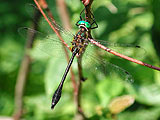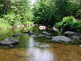 |  | | Litchfield Co. Connecticut, June 16-17, 2007 After guiding a New York Linnaean Society field trip for dragonflies at the Ward Pound Ridge Reservation in Westchester Co. NY, I drove an hour north to my friend Kristine Wallstrom's cabin on the bank of the Shepaug River in Connecticut. The Shepaug is a lovely little stream with rocky riffles bordered by woods. It is home to beavers and Common Mergansers and a good variety of dragonflies and damselflies. I had a couple of targets to find on the river, Mustached Clubtail, Gomphus adelphus and a species that is becoming a nemesis, Brook Snaketail, Ophiogomphus aspersus. I have looked for the snaketail on two good streams this year, seeing only a single male that I failed to catch. I arrived at the cabin a bit too late to find dragonflies. It had rained and was very cool but with good weather forecast for the next day I remained hopeful. Steve Walter, a fine dragonfly and moth enthusiast, was also visiting. After supper he set out his moth lamps and spent the evening checking what was attracted to the light. I stayed up a little while - long enough to see the a spectacular Luna Moth and went to bed. Some moths stayed perched on the cabin walls in the morning so I photographed a few, my selection based on nothing more than how interesting they looked. The morning was sunny. Ovenbird calls rang out in the woods as we made an early start to look for the Harpoon Clubtail, Gomphus descriptus. We were to look for a cornfield by the Hollenbeck River off of Rte. 63. However we found no corn and all the promising-looking fields were "Posted," private property. We eventually pulled off 63 where Brown Brook crossed under the street and checked along the roadside. A dragonfly suddenly popped up and landed in a bush. Steve got a few pictures of the male Harpoon Clubtail then I netted it. We didn't see any others in the immediate area by the stream crossing. I worked down along the road until I was fortunate enough to spot a female so despite very limited habitat access, I managed to collect a pair. Steve and Kristine went on to look for some more northern species while I returned to K's cabin to enjoy its access to the Shepaug. As I parked the car I saw what looked to be a snaketail perched on top of a stem. I frantically tried to get out of the car with the net but it was gone. To my greater disappointiment it looked like it might have been a female. I kept rechecking that spot throughout the day without success. Several Brook Snaketail males perched on the rocks above and below the riffles. They were fairly wary but I managed to catch a couple. I also caught a Maine Snaketail, Ophiogomphus mainensis, darker-patterned than the Brook and confirmed its presence on the river. I only saw a couple of Mustached Clubtails and like the Brook Snaketails, saw only males throughout the day despite extensively searching for females both on and off the water. Numerous along the banks were both Ebony and River Jewelwings, Calopteryx maculata and aequabilis, Sedge Sprite, Nehalennia irene, and Four-spotted Skimmers, Libellula quadrimaculata. I saw three spiketails, Twin-spotted, Delta-spotted, and Arrowhead, Cordulegaster maculata, diastatops, obliqua, Stream Cruiser, Didymops transversa, and Springtime Darner, Basiaeschna janata. Ashy and Lancet Clubtails, Gomphus lividus and exilis, were along the river edge.There were a few American and Racket-tailed Emeralds, Cordulia shurtleffii and Dorocordulia libera, flying around the river, and a few Hudsonian Whitefaces, Leucorrhinia hudsonica in the garden, adding a distinctly northern flavor. Thanks to Kristine Wallstrom and Steve Walter for all the great fun and assistance. | |