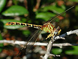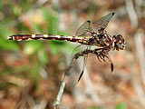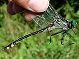 |  | | Georgia, June 8 - 13, 2007 If you are trying to see as many dragonfly species as possible June is the month to be out. As spring begins its turn to summer, a great variety of species begin flying throughout the continent. But it is impossible to be everywhere at the same time. This year I've decided to stay mainly in the East and thus far been concentrating on the Southeast. As the weather continues to warm, I'll shift to species in the mid-Atlantic region and eventually points north. But June in the Southeast brings yet another wave of species. I had hoped to get to Tennessee and look for some very range-restricted species such as Tennessee Clubtail and Acuminate Snaketail but I could not schedule enough time to adequately pursue them. With so many choices and needs, I decided on another visit to Georgia. Giff Beaton, author of Dragonflies and Damselflies of Georgia, guaranteed I would see Cherokee Clubtail, Gomphus consanguis and Splendid Clubtail, G. lineatifrons, so how could I turn that down? I flew to Atlanta on Friday, June 8, which was horrible. While I sat in the plane, the noon flight out of LaGuardia was delayed 2 1/2 hours. Something about a FAA computer going down but my connecting flight was able to leave without me. I got all of 100 miles to Philadelphia and waited several hours for another flight to Atlanta. When I landed my rental car reservation was long gone and a couple of rental car companies only had SUVs and minivans left. I finally got a Dodge Charger which I guess is some kind of muscle car. After a few wrong turns I got to Giff's house in Marietta at 11:30 PM. But the next day was great. Giff led me to Clarks Creek in Chattooga Co. where we walked an adjacent field and soon found both sexes of Cherokee and Splendid Clubtails. Male Cherokees are quite variable in appearance notably the amount of yellow on the club. We found some with large yellow spots and some with hardly any yellow at all. Along the stream, Giff would quickly assess then predict which stalk of vegetation would be a suitable perch for a Cherokee and more often than not a binocular scan would prove him right. The males would often choose prominent perches but low to the water. The Splendid is an impressively large clubtail, like the the Blackwater, G. dilatatus, and bigger than the Cobra, G. vastus. They were seen in Kentucky during last year's national DSA meeting but I missed them and only saw the similar Handsome Clubtail, G. crassus. Since we hit our main targets by 11:30 AM, over lunch we discussed the plan for the afternoon and the rest of my trip. We had targeted Sable Clubtail, G. rogersi for Monday but thought to try for them in the afternoon. Then Giff remembered a site for Appalachian Snaketail, Ophiogomphus incurvatus and although it was late in year for the species this site was far enough north in the State to produced some late records. It was a long shot but I decided to take it. We didn't get to the Jarrand Creek in Union Co. until around 4: PM which isn't a bad time for snaketails. Following the stream was not easy, the bottom was sometimes silty and deep and the shoreline was a tangle of vegetation and brambles. We saw a couple of Gray Petaltails, Tachopteryx thoreyi, my first of the year, and both Brown and Twin-spotted Spiketails, Cordulegaster bilineata and maculata, respectively. I netted a female Eastern Least Clubtail, Stylogomphus albistylus which I needed but in the end we saw no Appalachian Snaketails. However at a sunny spot along the creek I spotted a male Sable Clubtail perched on the shore. I waded over and managed to catch him so we got both Stenogomphus species in one day. Giff had to work on Sunday so I drove a couple of hours east to near Augusta to look for Piedmont Clubtail, Gomphus parvidens. Although it was getting late for the year for them I felt pretty confident. I only needed a male since I had found a female on the previous Southeastern trip. I waded a couple of tannin-stained streams, one with the interesting name of Boggy Gut Creek. Common were Sparkling Jewelwings, Calopteryx dimidiata, and Powdered and Blue-tipped Dancers, Argia moesta and tibialis. In the shade lurked a few Blackwater Bluets, Enallagma weewa. I found a female Blackwater Clubtail, and a teneral female Laura's Clubtail, Stylurus laurae, both new Richmond Co. records. The most interesting dragonfly was one that got away. I flushed up a female Emerald, Somatochlora. She landed briefly and through binoculars I could see she was slim with long appendages. However she was on the other side of a deep pool in the stream. I started to work around along the edge but when I looked up again she had flown. And I failed to find any Piedmont Clubtails. Unfortunately disappointment was to be the theme of the rest of the trip. On Monday, Giff and I tried to find a female Sable Clubtail but was cool and cloudy all morning and we didn't see any. Although Giff was having fun, I was reduced to looking for robber flies that Giff wanted to photograph and catch. We parted after lunch and I made a long drive to southeast Georgia to try for Smoky Shadowdragon, Neurocordulia molesta. I arrived at the big and wide Altamaha River near Jesup with a lot of time to spare so I had to wait a couple of hours until sunset to try to see this dusk flying dragonfly. Big Powdered Dancers flew by at sunset, and a large swarm of Prince Baskettails, Epitheca princeps, circled over the boatlaunch. At 8:30 a few dark dragonflies flashed by low over the water. I was perched on the rocks at the edge of the river. I couldn't go in very far as the bank sloped steeply into deep water. A couple of shadowdragons came nearly into net range and I took a couple of bad swings and missed. I didn't worry about missing the first few. Giff had great success here in previous years. He had the dragonfly in such great numbers that he caught some of them just swinging his net blindly in the dark. I had no such luck. In the 15 - 20 minute