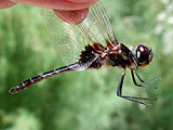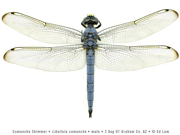 | Arizona Postmeeting Trip Safford, AZ., July 31 - August 3, 2007 Tuesday, July 31 There are two ways to get to Safford from Springerville. On the map the most direct way is down Rte. 191 but that is 165 miles of slow, winding road, a part of which is through the ruined landscape of a gigantic copper mine. The other is to make a loop east into New Mexico. It's longer but you can usually drive a little faster. Since Jerrell and I decided to go to the San Francisco River in New Mexico, we would try the latter. I would have liked to have spent more time at the San Francisco. It is a small stream running through a canyon. Kathy and Dave Biggs came with us and got to see Painted Damsel and Arizona Snaketail. The snaketails were fairly common here but I missed catching yet another female. Luckily Jerrell and others caught some that I got to scan. I most regret not seeing the handful of Persephone's Darners, Aeshna persephone that Jerrell saw upstream but couldn't catch. I didn't go as far as he did and by time he came back and reported his sightings, clouds had rolled in. We waited, but had to set ourselves a time limit. The clouds did not part and we had to move on. Missing Persephone's Darner was by far my biggest disappointment of the trip. This was the only known location we would visit for the species. If I had known that earlier, I probably would have tried the day before. Not too many people tried the San Francisco in the preceeding days and I'm sure we would have done better if we only had more nets on the ground. I began harboring the idea of driving up from Safford to try again. But the ride to Safford was sobering. It took more than three hours and with the weather so unsettled, an attempt could mean a waste of a whole day. Those who had taken the AZ route to Safford had a poor time of it. It rained. Dave Halstead stopped at some ponds in New Mexico and caught three male Arroyo Darners, Aeshna dugesi, which he let me scan. Dennis Paulson let me have a male Dashed Ringtail, Erpetogomphus heterodon, which he also found in New Mexico so going east, at least for some, was the right decision. I dropped Jerrell off then went to look for my motel. I made my reservations late for the trip so I was not able to stay at the same place with everyone else. The week before I had called every motel in town until I finally found a room. It was a barracks-like complex at the edge of town catering mostly to construction and mine workers. The fellow next door was entertaining female company. My room was dingy and where pictures once hung, only dirty shadows remained. The shower was busted and the air smelled like something was deep frying in oil. I was really happy when a room at the Econolodge opened up the next day. Wednesday, Aug 1 The Pinaleno Mountains loom to the southwest of Safford and most of us were drawn up to visit the streams that flowed down the slopes. Always a bit behind again, Jerrell Daigle, Paul Bedell, Dave Halstead and I caught up with main group just as they were leaving one of the streams. It was still early and they had not seen much. They were going down to the valley and would perhaps try the mountains again in the afternoon if the heat below got to be too much. We lingered for a while at the stream but saw little. Then a Riffle Darner flew by, and someone yelled out, "Apache Spiketail!" Dave got a swing but it got away. We waited and of course, the clouds rolled in. Then it rained. We got into the car and started to descend the mountain but when we looked back, it looked like it might clear. The stream seemed right on the edge of raincloud and blue sky. So we went back and waited but that edge could never quite reach us. We headed back down feeling like we wasted the morning. It was invitingly sunny in the valley as we pulled into Roper Lake State Park. Dragonflies were flying at Dankworth Lake and we were not used to the abundance. Western Pondhawks, Erythemis collocata, Comanche Skimmers, Libellula comanche and Roseate Skimmers, Orthemis ferruginea cruised the edge of the parking lot. Tiny Desert Firetails, Telebasis salva were down at a hot spring accompanied by a few Kiowa Dancers, Argia immunda. Over the water flew pairs of Black and Red Saddlebags Tramea lacerata and onusta, Checkered Setwings Dythemis fugax, and Marl Pennants Macrodiplax balteata. Male Red-tailed Pennants, Brachymesia furcata and Blue-eyed Darners joined the swirls of dragonflies chasing each other. It was hot standing out in the open but we enjoyed all the activity for a couple of hours. Every once in a while, someone would look up at the mountains to see if the clouds had moved off. When it looked like they finally did, we headed back up to the mountain and it was sunny when we got to the stream. We waited, but all we found were more Riffle Darners. I never did clearly see a live Apache Spiketail on the trip, only a couple of dried specimens that were collected elsewhere before the meeting. We decended once more, stopping at Roper Lake in the late afternoon where we saw a large number of Four-spotted Pennants, Brachymesia gravida but little else. We sat a while and compared notes with Steve and Marcia Hummel and it started to rain. A family of quail pecked at puddles in the parking lot. Thursday, Aug 2 While we had spent the previous afternoon at Dankworth and Roper Lake, almost everyone else had gone to Bonita Creek in the Gila Box Riparian Area. They returned with quite a list, and raved about how wonderful it was. I saw the photographs and I was sorely tempted by the Plateau Dragonlet, Erythrodiplax basifusca, Filigree Skimmer, Pseudoleon superbus, and a damselfly, the Desert Shadowdamsel, Palaemnema domina. Why an interest in a damselfly when my book is just dragonflies? From pictures, I knew the shadowdamsel was an elegantly proportioned species, delicately marked in blues and browns. It retreats into the shadows when the sun gets hot and reappears after a rain. It's the only member of the fami