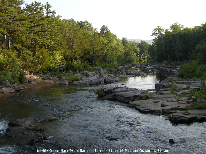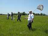 | Dragonfly Society of the Americas Annual Meeting June 19-21, 2009, Sullivan, Missouri & pre-meeting and post-meeting excursions Tuesday, June 16: There were two pre-meeting trip options available before the DSA annual meeting in Sullivan, Missouri. One was based in the town of Columbia, a couple hours west of St. Louis where I would be landing. The other was in the far southwestern corner of the State in Lamar, a good 6 hour drive from St. Louis. Guess which one I chose. There were actually more species I needed on the Columbia trip list versus the list for Lamar, but most of those we could encounter during the meeting itself. Still up to a couple of days before getting on the plane (from New York to Atlanta to St Louis) I hadn't made up my mind which one to attend. But on the DSA webpage for the meeting there was a scan of an odd spiketail. Maybe a new species or just a prairie variation of an Arrowhead Spiketail, Cordulegaster obliqua. Instead of small yellow arrowheads on top of the abdomen it had large rectangular markings. Being a sucker for pictures, I just had to see this one despite one grueling travel day. When I arrived at the motel in Lamar, Tim Vogt had a living pair waiting, having caught them a couple of days previously. Wednesday, June 17: Led by Tim, we were a small group: Nick and Ailsa Donnelly, Mike Blust, Bryan Pfeiffer, Erik Pilgrim, and myself. We looked for more Cordulegasters, following a small stream along the edge of Prairie State Park. A few Regal Fritillary butterflies floated on the breeze. Bryan caught a young male spiketail, and later a female was caught. We came to a pond, where some common skimmers were flying, mostly Spangled, Libellula cyanea and Widow Skimmers, Libellula luctuosa. We found a handful of male Stillwater Clubtails, Arigomphus lentulus perching along the pond edges. No females were seen, the first of many targets missed. Our next stop was a parcel of prairie called Cook Meadows. In the rising heat we found another spiketail, which Bryan and Mike photographed. It was likely the first time this particular form had been photographed in the field. After they were done I moved in with the net but it had enough of posing and took off before I was ready to swing. We tried a couple of more spots and saw a few more species like Comet Darner, Anax longipes and Mocha Emerald, Somatochlora linearis. I got to step onto Kansas soil for the first time. At the end of the day we stopped to turn the cars around to head back to Lamar when we noticed a few dragonflies flying around. We managed to net a few which turned out to be Slender Baskettails, Epitheca costalis. We saw another Comet Darner, then a River Cruiser, Macromia of some sort. Tim netted a Sulphur-tipped Clubtail, Gomphus militaris that just happened to fly by, the only one I saw on the trip. I spotted a Black-shouldered Spinyleg, Dromogomphus spinosus, and Bryan braved poison ivy to reach for a Banded Pennant, Celithemis fasciata. It was a pleasant way to end the day, unexpected variety on a random stretch of road. Thursday, June 18: Our plan was to revisit Cook Meadows in the morning for more spiketails. Tim needed more individuals for DNA work on them. Then we would head three hours east, stop at a fen in Mark Twain National Forest before heading to the meeting in Sullivan. I spotted a spiketail the moment I reached the stream. I followed until it landed and netted it. A little ways down the stream I caught another male gaining a little redemption for missing the one the day before. Later I spotted a third, but it had just emerged and was very teneral. Although it would have been just as useful for DNA, I decided to let it go unmolested. Tim caught another female so three from the site should be sufficient. Then we convoyed east arriving at Kaintuck Hollow in mid-afternoon. Tim warned us there might be biting flies in the fen but they weren't bad at all. But it was hot and coupled with the humidity in the fen it was hard not to just stand in the shade. There weren't many species found, Gray Petaltail, Tachopteryx thoreyi and Seepage Dancer, Argia bipunctulata were the most common. There were handful of skimmers and a few Springwater Dancers, Argia plana of the blue variety. I was hoping to find clubtails so I worked the dryer ground and I found a single female Westfall's Snaketail, Ophiogomphus westfalli. I had collected only a male of the species a couple of years ago in Arkansas so this was on my list and a fortunate find. Friday, June 19: Field trips began at 8AM heading mostly for the Meramec and Bourbeuse Rivers. The organizers provided quite a list of species for the two rivers but nothing was guaranteed. I was particularly interested in the pond clubtails, Arigomphus for which I need females, a couple rare for the region clubtails, Gomphus, and Gilded River Cruiser, Macromia pacifica. I joined the Bourbeuse River group led by Jane Walker and Joe Smentowski. The first clubtail we found was a Common Sanddragon, Progomphus obscurus. Further down river we started seeing a clubtail with lots of yellow on the abdomen which turned out to be Pronghorn Clubtail, Gomphus graslinellus. We also picked up Ozark Clubtail, Gomphus ozarkensis a large dull colored species and the tiny Interior Least Clubtail, Stylogomphus sigmastylus. I saw a River Cruiser. It did not have a lot of yellow on the abdomen so it probably was a Swift River Cruiser, Macromia illinoiensis. As the group scattered up and down the stream, Joe was trying hard to keep tabs on everyone's whereabouts during the stop. I was told he was a retired science teacher and he sure seemed to be treating us like students on a field trip. I was amused at first but after a little while it got annoying. We tried a couple of crossings further downstream but the river was swollen and difficult to access. We returned to a spot upstream that looked good when we stumbled upon it earlier, and spent the rest of the afternoon there. We found a couple 