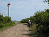 |  | | New Brunswick, Take 2 August 10-15, 2009 My first trip to New Brunswick in June was pretty much a bust. I had a long list of species I wanted to see but it rained most of the time and I returned with only a single dragonfly, a female Zigzag Darner, Aeshna sitchensis for my efforts. I planned a second trip for August aiming for more darners and still hoping for emeralds, Somatochlora.  photo by Kristine Wallstrom Monday, Aug 10: Again Kristine Wallstrom accompanied me for the long drive from New York. Setting out early in the morning, I wanted to make a stop in Maine at a location we had visited a couple years ago. The 1000 Acre Heath was a great place for emeralds so making a slight detour from our route could be worthwhile. At the head of the road into the heath we saw a few darners but we couldn't get to the best stretch of the road because someone had narrowed a bridge to exclude automobile traffic. We could have parked and walked further but we were up against the clock, needing to get to Canada. Without a bike or an ATV handy we turned away disappointed. After crossing the border in the late afternoon, we stopped at a visitor center to check our lodging possibilities. The center and its parking lot was situated on top of a hill and all around us darners were swarming. We spend a few minutes swinging our nets at them. Most were Canada Darners, Aeshna canadensis with a few Shadow Darners, Aeshna umbrosa mixed in. Nothing special but a good sign of things to come I hoped. Tuesday, Aug. 11: After spending the night in a motel in Doaktown we headed to the "Renous Bog" off of highway 108 in central New Brunswick. The weather forecast had improved and we wanted to take advantage of it. We had planned on meeting Denis Doucet, a biologist at Kouchibouguac Natiional Park at the bog, but he called us the evening before to cancel due to illness. We hoped we could find the bog ourselves, off the highway and up a dirt logging road to a point close to the coordinates Denis provided. We walked down a side road probing for an access point to the bog and trying to catch dragonflies. There were a few darners, Variable Darner, Aeshna interrupta interrupta being the most interesting to me. I saw a couple of emeralds and even got the net on one but it somehow escaped. White-faced Meadowhawks, Sympetrum obstrusum were common as were Green Comma butterflies. We walked back to the main road still looking for the bog. We found one but access was difficult from the road. There were several deep open pools but at one point one could just manage to get onto the sphagnum mat. At this type of bog you walk carefully on a mat of floating vegetation. It's like walking on a wet sponge. It can be quite stable where it is thick but there's the possibility of hitting a weak spot and falling through into the water. Then it's difficult to get out because there's not much to pull up on. Because of this I left my camera in the car so I don't have any photographs of the landscape to share. At one point one leg did break through but luckily the mat under my other leg held. However I wasn't sure this was the Renous bog, the GPS coordinates were off. Since I was alone on the bog at the time, I didn't venture very far from the road. I did see a few interesting species. A couple of male Zigzag Darners flew about but I couldn't get close to them. Then I caught a female emerald laying eggs in a little pool of open water. It was a female Incurvate Emerald, Somatochlora incurvata, and one of my targets. I expected this species to be common so it wasn't a surprise. Later I caught a male Ski-tipped Emerald, Somatochlora elongata flying over the road. His wings were quite tattered, an indication that the species has been out for a while. At the end of the day I saw several Ocellated Darners, Boyeria grafiana flying low along a stream. Kristine had not seen this species before so I was happy catch one for her to examine. Driving back on the highway we encountered a huge congregation of feeding darners. I feared hitting them with the car and for several miles there was always a dragonfly in sight.  photo by Kristine Wallstrom Wednesday, Aug. 12: We arranged to meet with Denis at Kouchibouguac at noon so we spent the morning on the road to Escuminac point. I did not see any emeralds but there were lots of Variable Darners foraging near the lighthouse. Also flying were several Cherry-faced Meadowhawks, Sympetrum internum. Males here actually do have reddish faces unlike the ones we have at home. We spent the rest of the day with Denis and three of his interns. We added a new species to the park list, Azure Bluet, Enallagma aspersum but I did not find anything that was on my list until Denis netted a male Zigzag Darner. In the late afternoon Kristine and I found a small Aeshna swarm but didn't find anything different among the ones I caught. Thursday, Aug 13: After consulting with Denis the previous day, it was determined that we were at the right spot for the Renous Bog but I just didn't go far enough. To avoid the somewhat treacherous access point from the main road I decided to try to get to the bog from the other dirt road by cutting through some woods. The bushwhacking worked, the trees opened up to a large open bog with a good size lake. However we were looking for a series of smaller ponds but I thought if we worked back towards the main road we would encounter them. There was a fair number of dragonflies flying, darners around the lake, meadowhawks on the bog. I spotted a dull red meadowhawk, netted it and was pleased to see it was a Saffron-winged Meadowhawk, Sympetrum costiferum. We made our way across the bog to the Renous River were we hoped to find Sedge Darner, Aeshna juncea. However all I was catching turned out to be Canada Darners. Finally I caught a different species back at the lake. I was initially elated thinking it was a Sedge Darner but the thoracic stripes seemed too thin. Reluctantly I had to conclude it was a
